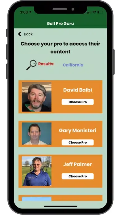 The Golf Pro Guru App is designed to make it easier for golfers and golf instructors to connect and communicate. Golf instructors can showcase their video content and provide quick and easy links to their contact information and scheduling sites. Golfers are able to get an "upfront" insight into the instructor's personality and teaching style and can easily connect with the instructor to schedule lessons. Many instructors have online lesson scheduling systems that can be accessed directly from the App.