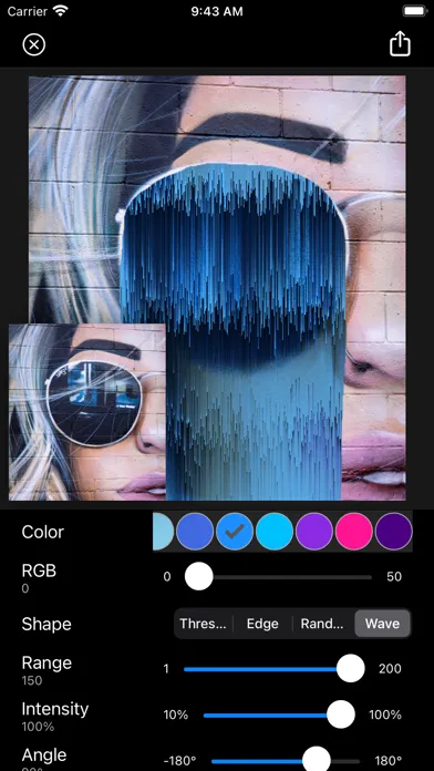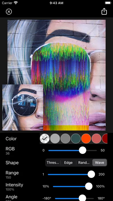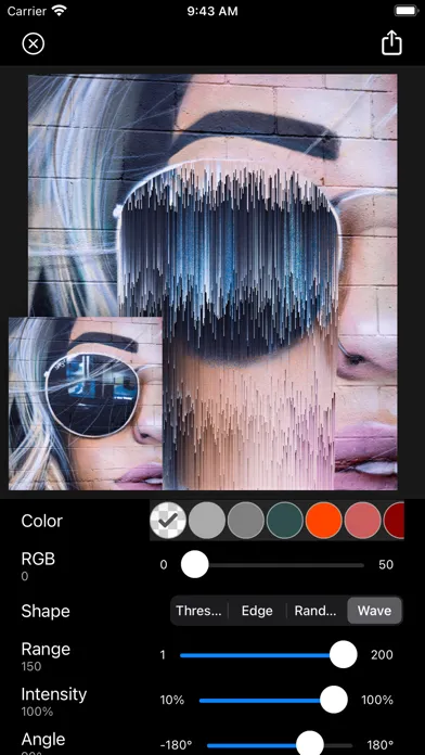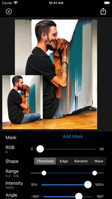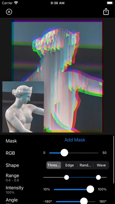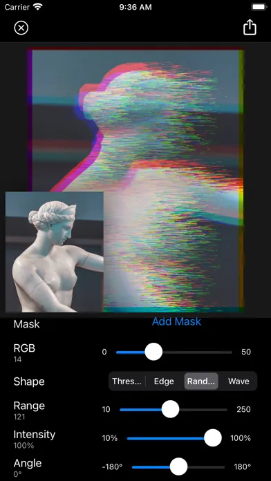 ● Apply glitch effect to specific area of image with powerful masking tool.