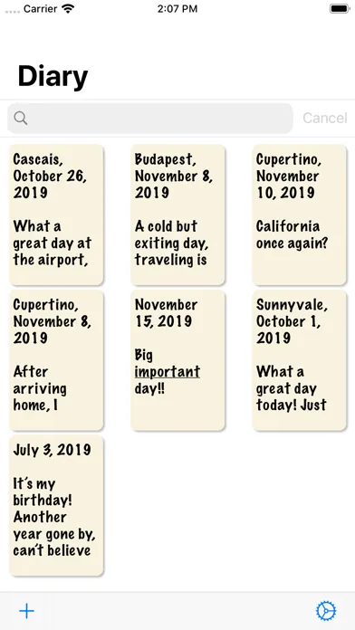 * Any change in default settings such as automatic date/location, notes arrangement and ordering (list or grid), security pin.