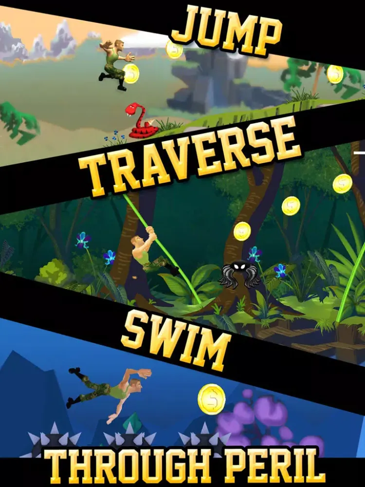 Brave your way through perilous stages filled with snakes, spiders, and drones, oh my!