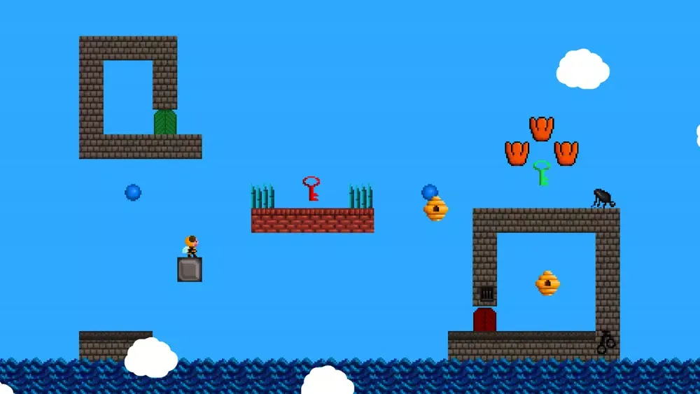 Our Bee-Man's hives are scattered all over the place. Help it collect all of the hives in each level and travel to the next level in the bubble!