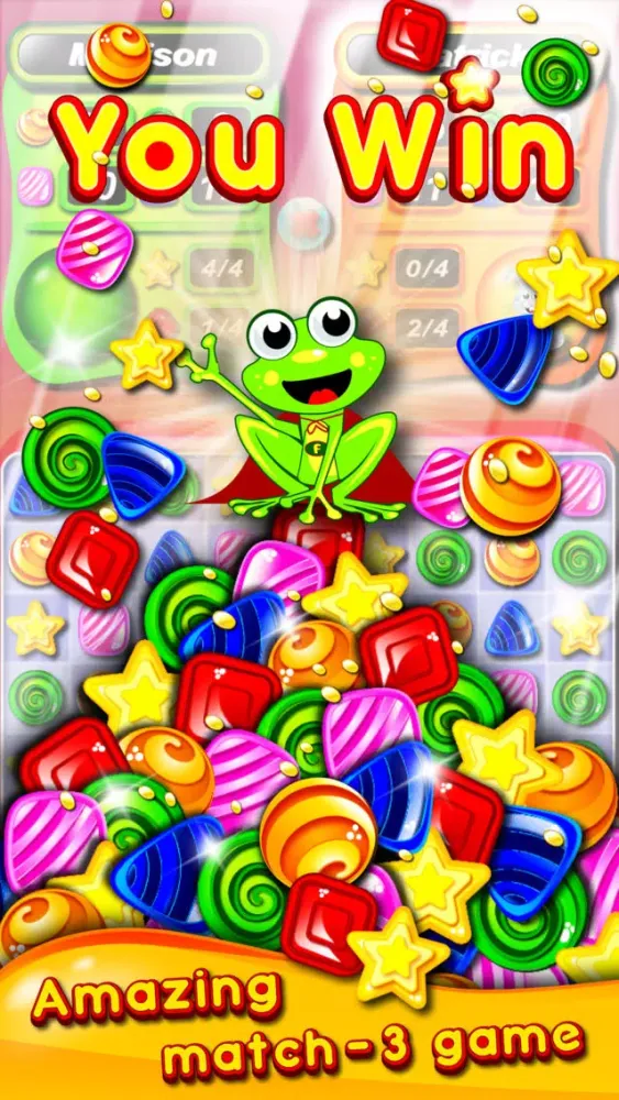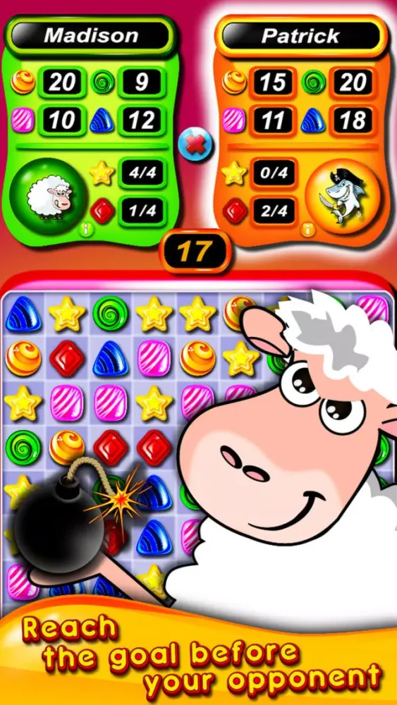 ◉ Slide delicious jellies to match-3 or more, and test your matching skills against real opponents