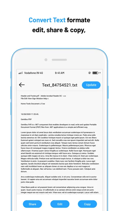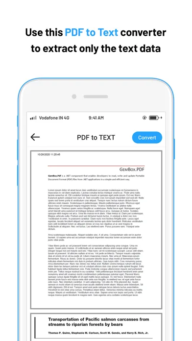 PDF To Text : Just select pdf from your iPhone device and press convert to save it as text file.