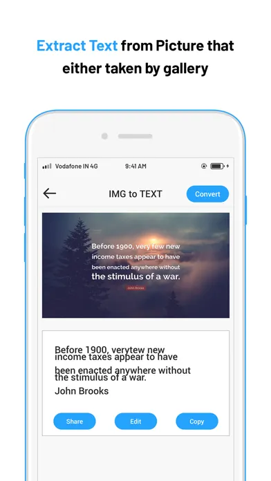 Image To Text : Select image from photo library and press convert to save it as text file.