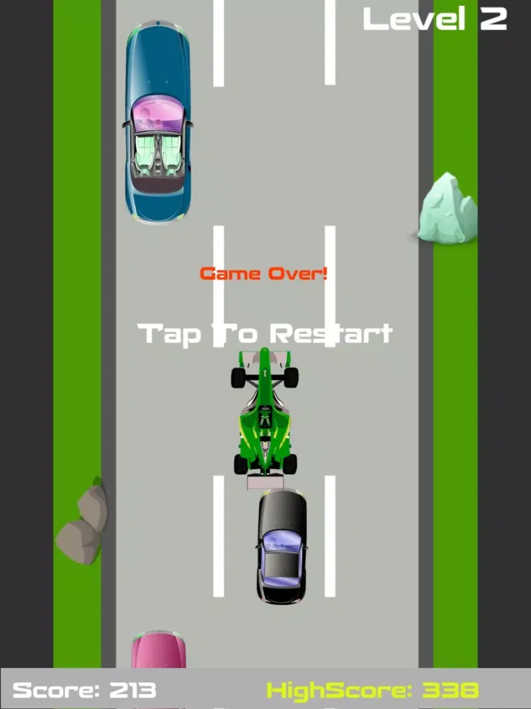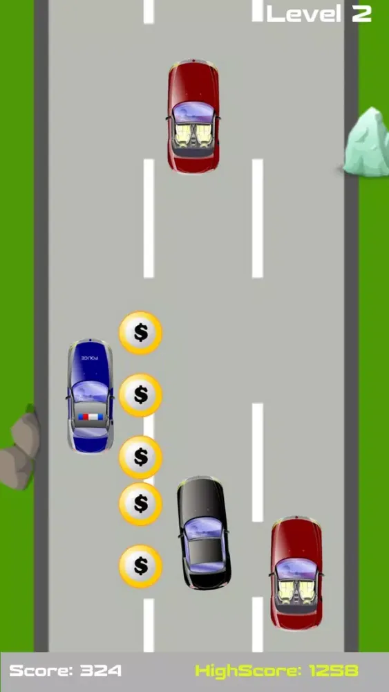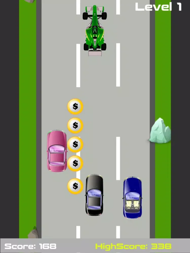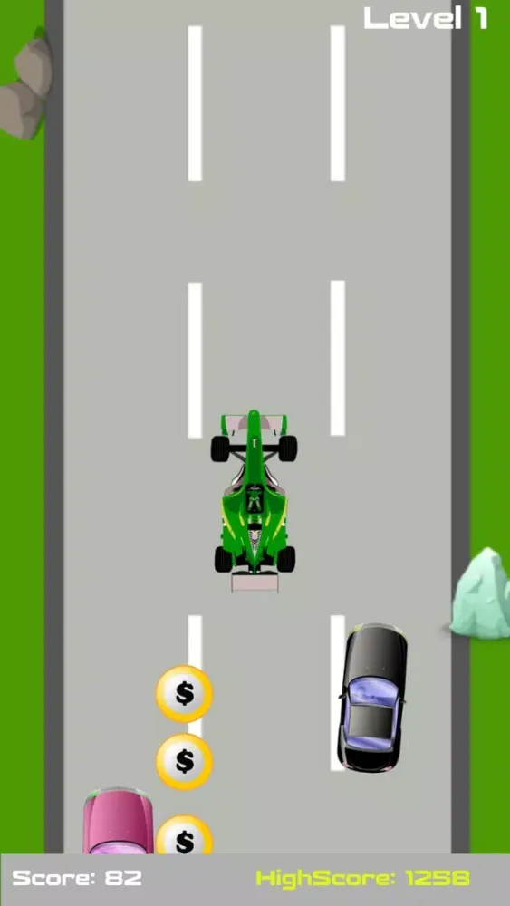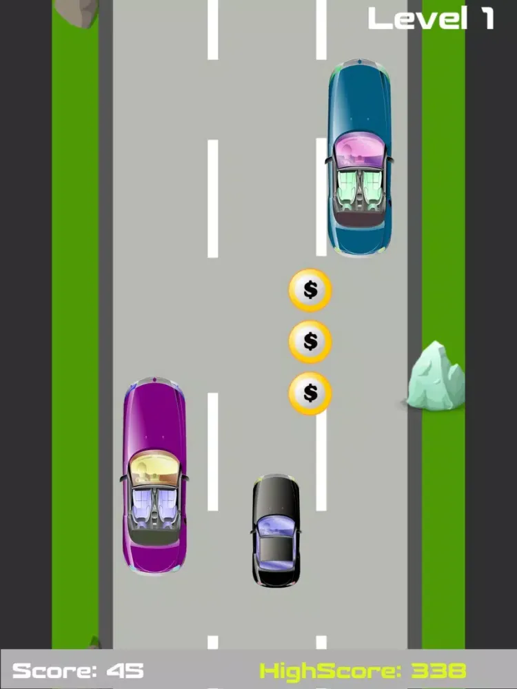 Game has different levels and each level is more challenging than the last one. The speed of your car starts to increase and you have to be more careful with the control of your car.