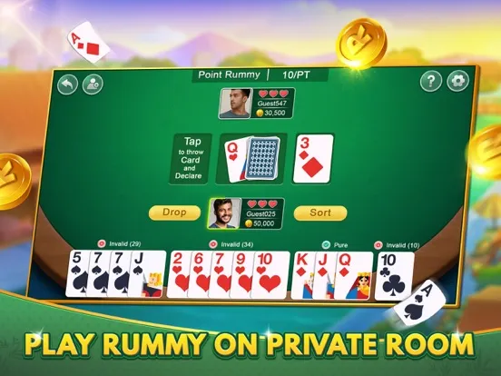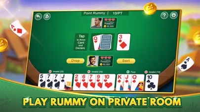 - Using a Private table you can invite your friends to play the game together with various variations like point rummy, pool rummy, and deal rummy.