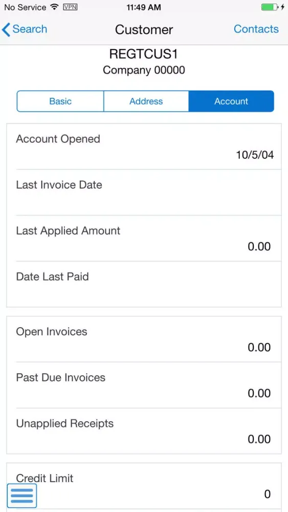 Customer Account Overview Smartphone for JDE E1