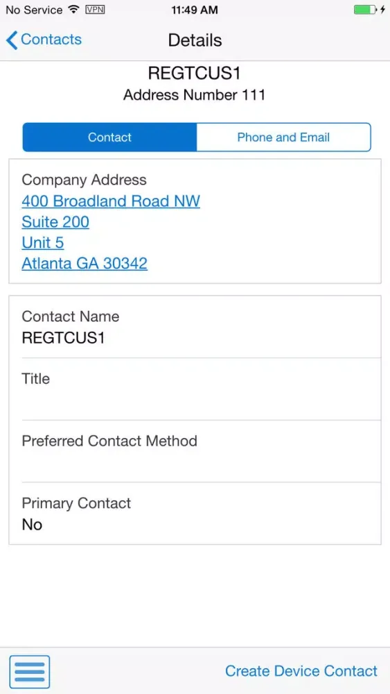 You not only have the contact information available through JD Edwards EnterpriseOne, you can also add the contact you are viewing to the contacts feature on your device. This will eliminate the need to access JD Edwards EnterpriseOne the next time you need to contact that customer.