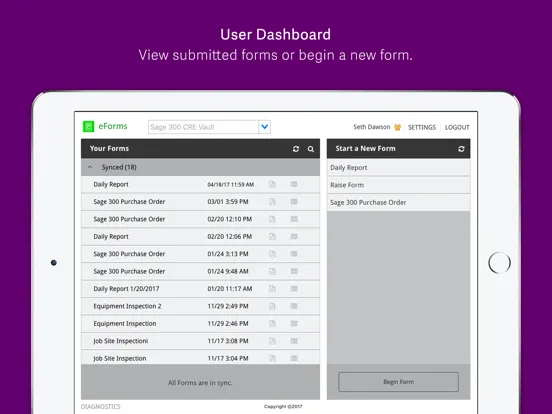 Replace your stacks of paper forms by publishing your forms to users in the field with eForms. With an easy to use management website, configure and publish any form to tablets in the field. Capture data and photos directly from the field and submit them instantly to your SPC server for instant storage and/ or routing. Map your forms to SPC document types and index values. Web services allow users in the field to have full lookup lists of jobs, equipment, vendors, employees, etc., straight from your Sage 100 Contractor or Sage 300 CRE databases.