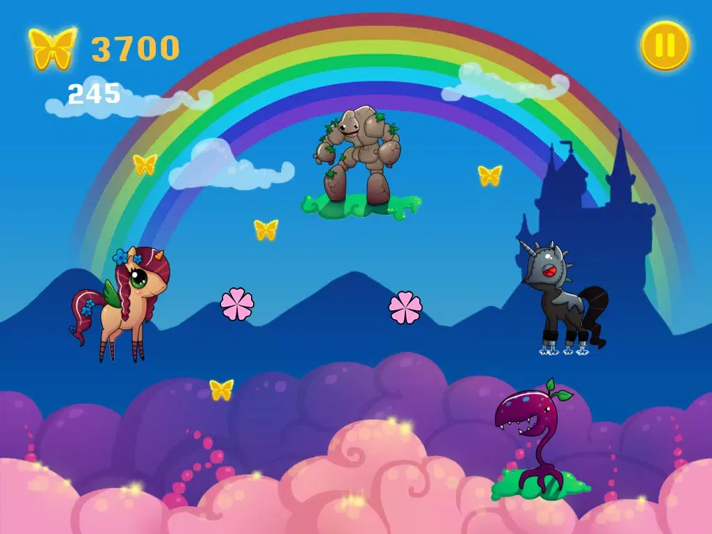 Help the royal unicorn princesses and prince fly through the fantasy world without getting hurt. Dodge the evil robot ponies and flying enemies!