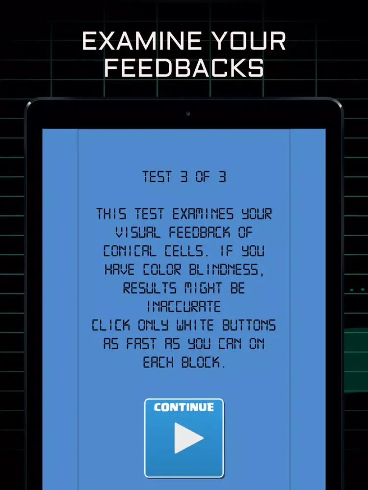 Reaction and reflex times, your motor capabilities and many more are tested with scientifically approved methods.