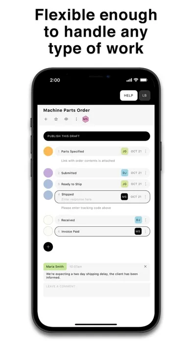 The visual interface tells you when work is complete but if you want to leave instructions, comments, or notes, you can leave them in the app.