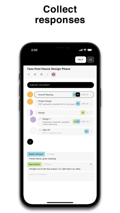 Polydot is a simple interface for helping you clarify steps and get things done with other people – including people that don’t have the app yet.