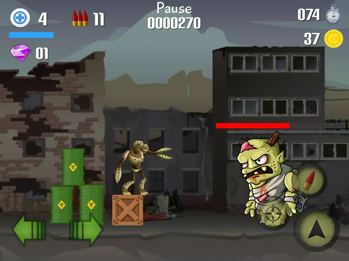 -Tons of levels and different robot characters for addictive gameplay in robot vs zombies games 2d with no ads.