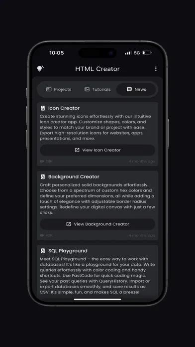 Elevate your coding experience with the HTML Creator app, where every feature is crafted to support your development needs. Whether you're writing your first line of code or debugging complex projects, the app is your perfect coding companion.