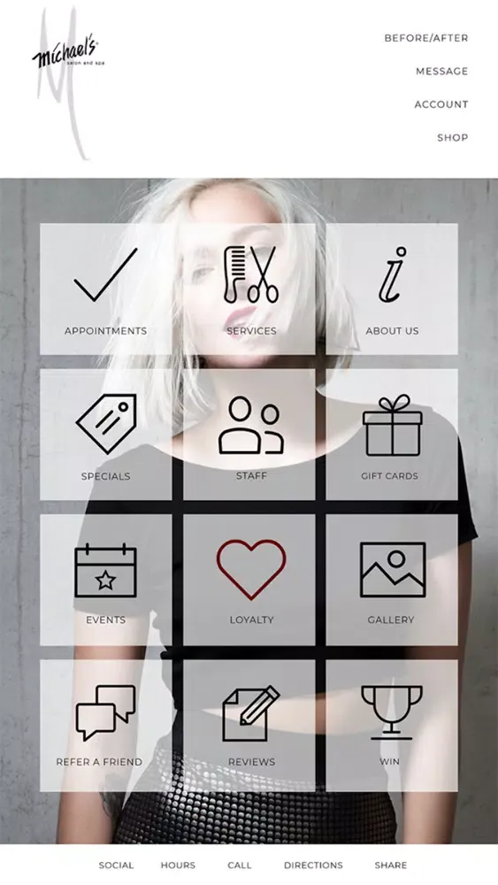 Easy access to Salon menu, Specials, Get alerts on specials, Hours, Directions, Make a Reservation and more.