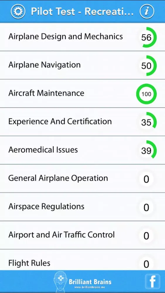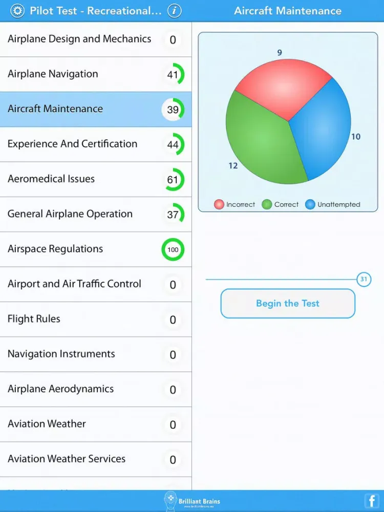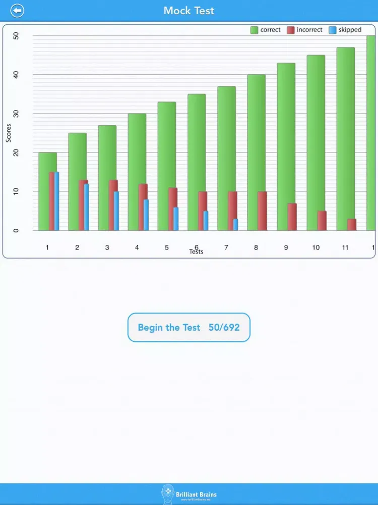 The app records your progress as you start giving practice tests.