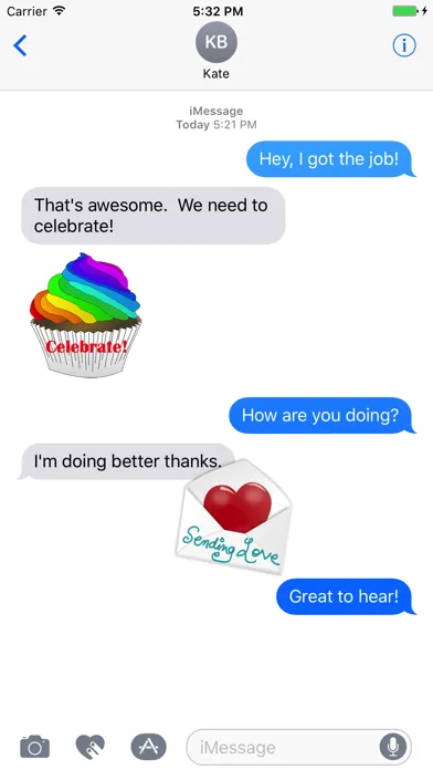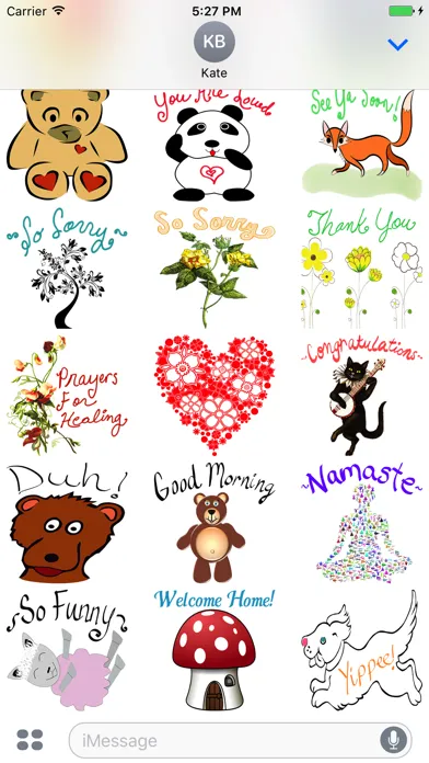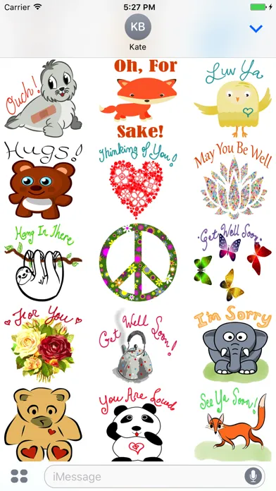 Choose from a selection of characters and phrases to add some extra fun, kindness, and love to your iMessages!