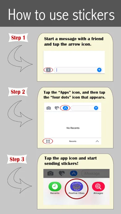 4. Now just tap the Positive Vibes Sticker Icon to look thorugh the stickers. You can then tap or drag the stickers up to iMessages to start sending stickers!