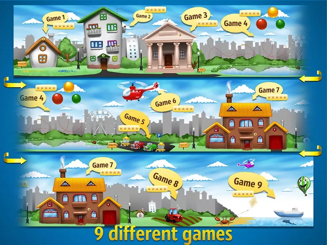 -- Play mode : 9 interactive games with increasing difficulty and levels and a bonus extra game