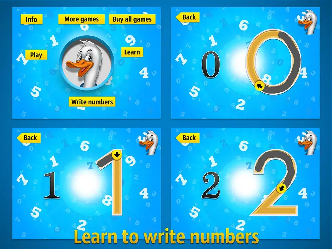 -- Learn to write mode : see how to write the numbers and try the guided tour yourself