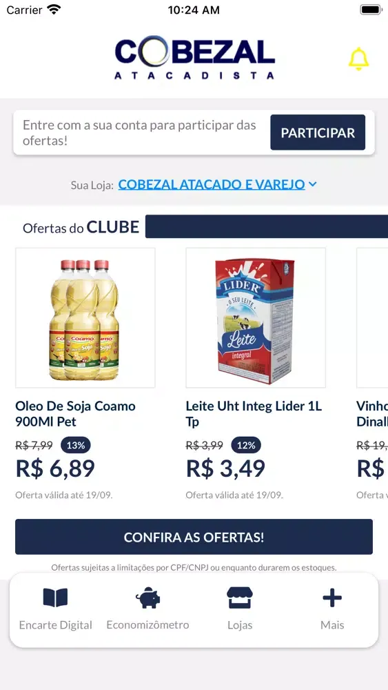 Com o aplicativo do Clubezal O App Da Cobezal você tem acesso aos descontos exclusivos do Clube onde estiver. E ainda pode adicionar os seus itens preferidos a uma lista de compras ou criar uma lista de itens favoritos para acompanhar se entram em oferta.