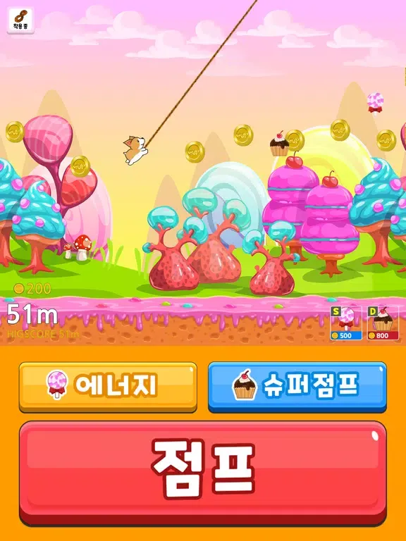 스윙게임은 밧줄을 타고 멀리가면서 고포인트를 얻을 수 있습니다.