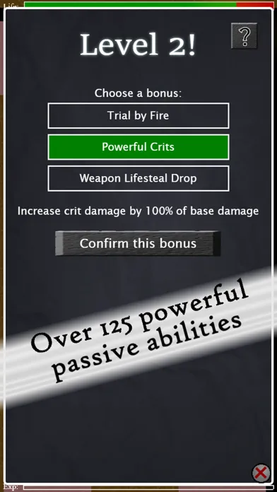 Totally optional in-app purchases. Level up and gain over 110 unique passive skills that interact in powerful ways! Hardcore: permanent death. Progression: unlock persistent bonuses and items with each run of the dungeon.