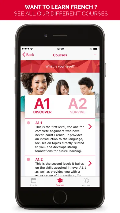 Already studying in Alliance Française? You can now see your courses and access contents from the app.