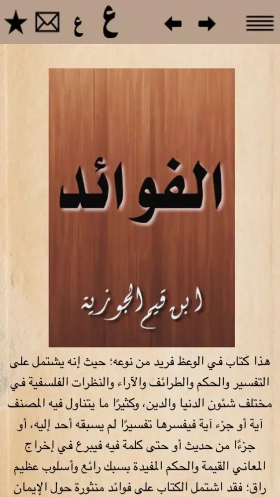 هذا كتاب في الوعظ فريد من نوعه؛ حيث إنه يشتمل على التفسير والحكم والطرائف والآراء والنظرات الفلسفية في مختلف شئون الدنيا والدين، وكثيرًا ما يتناول فيه المصنف آية أو جزء آية فيفسرها تفسيرًا لم يسبقه أحد إليه، أو جزءًا من حديث أو حتى كلمة فيه فيبرع في إخراج المعاني القيمة والحكم المفيدة بسبك رائع وأسلوب عظيم راق؛ فقد اشتمل الكتاب على فوائد منثورة حول الإيمان والإسلام والقرآن ومعرفة الله والتوبة والأخلاق، وفضائل السور ومعاني القرآن والاعتقاد، وفوائد حول الأحاديث المختلفة، وحقيقة الدنيا، وحقيقة الآخرة، وفوائد مستفادة من سيرة النبي صلى الله عليه وسلم