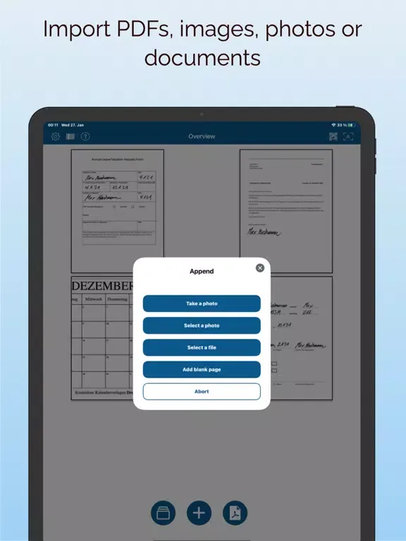 • Import PDF files, images, photos or documents from the Cloud or from other programs (e.g. directly from an email)