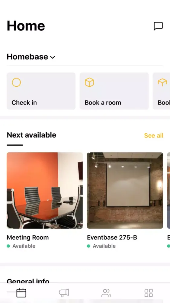 Download the Homebase Works app today to book our spaces in real time, from anywhere. Connect with our members and discover your community with in-app messaging, invoices, and more!