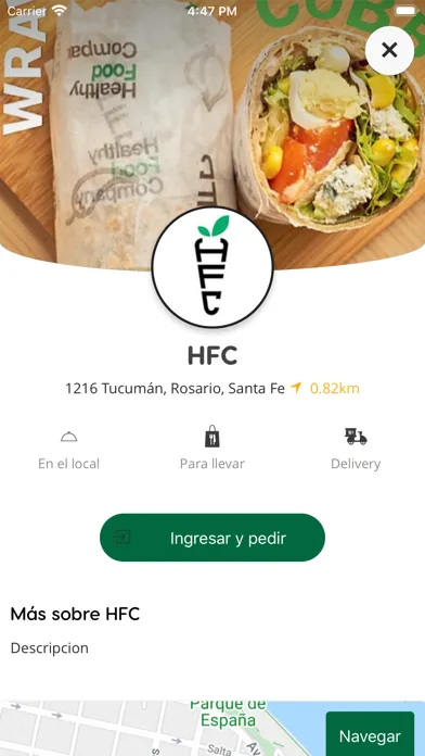 Abre el menú, navega por las distintas secciones, elige lo que quieres pedir y envía pedido. Puedes pagar desde la APP.