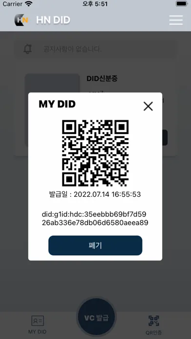 - 본 서비스앱은 기업내 B2B 신분증 발급 및 검증용을 위하여 개발 제공된 앱입니다.
