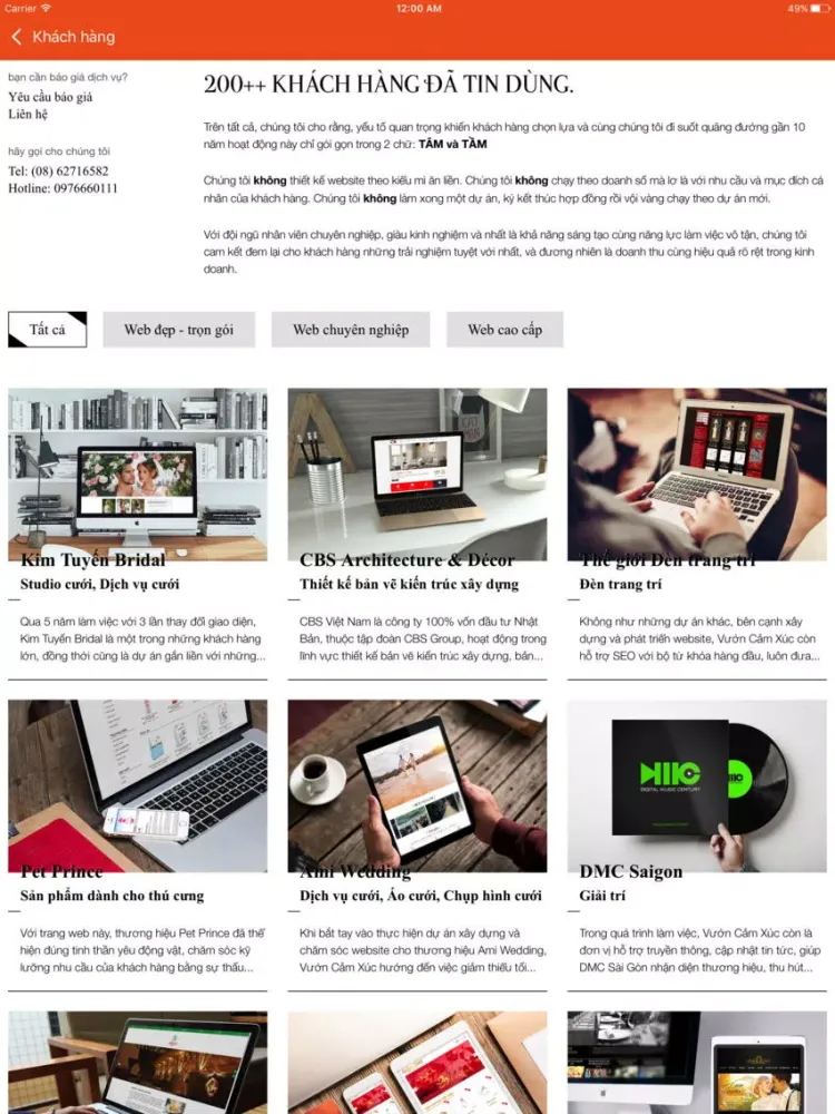 Hướng đến việc áp dụng những công nghệ mới nhất và khả năng thiết kế sáng tạo ưu việt vào những sản phẩm và dịch vụ của công ty đặc biệt là thiết kế website. Đến nay, chúng tôi đã thiết kế website cho hơn 200++ đơn vị lớn, nhỏ, trong nước và đã khẳng định được vị trí cũng như đẳng cấp.