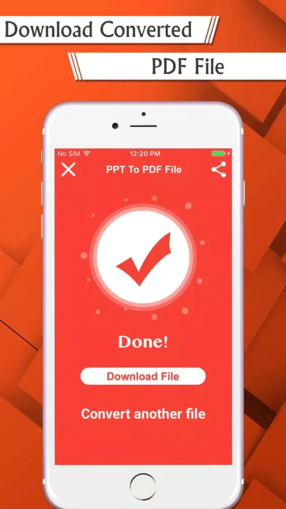 First, you choose a PowerPoint Presentation file such as PPT or PPTX file from your iPhone, then tap the "Upload File" button to upload your files to a cloud server and wait for the conversion to PDF. And that's it. Your PPT/PPTX file was Converted to PDF File.