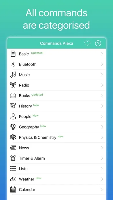 This app provides a full list of commands for Amazon Echo with Alexa virtual assistant. All commands are categorised.