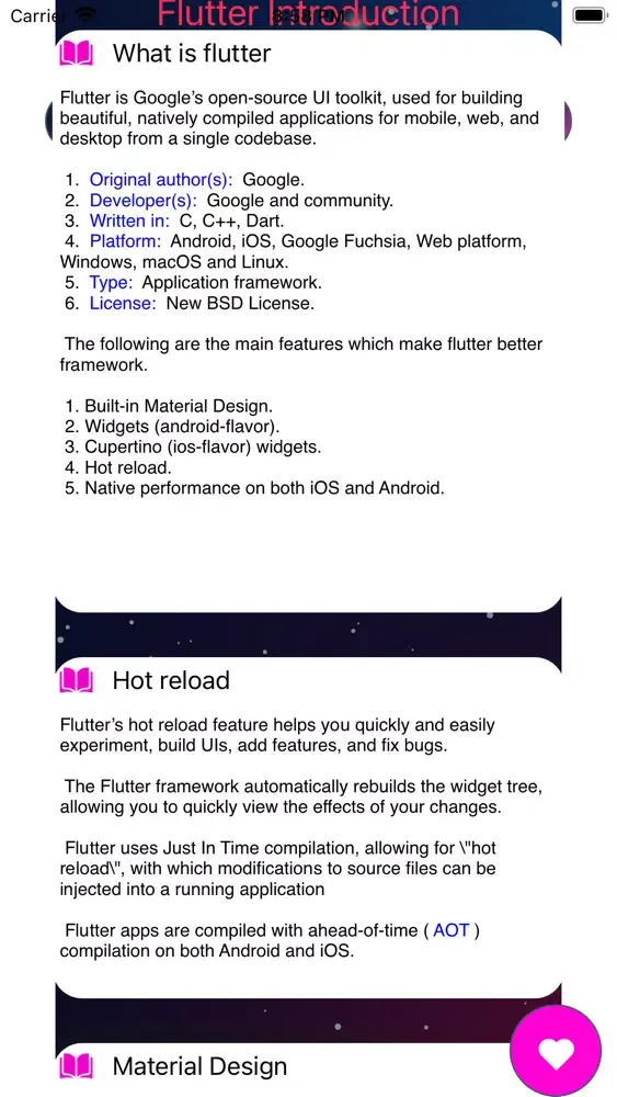The app allows you to learn flutter, learn about flutter, read flutter news, you will learn a lot about flutter