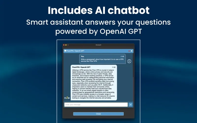 Global VPN + AI: Includes AI chatbot powered by OpenAI's GPT 4o