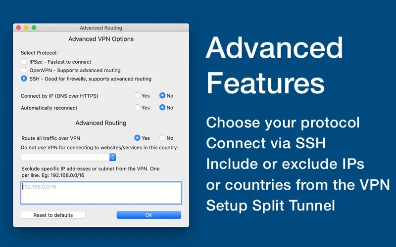 One click access to secure VPN protocols including WireGuard, IPSec, OpenVPN and more for the fastest, most reliable connection.