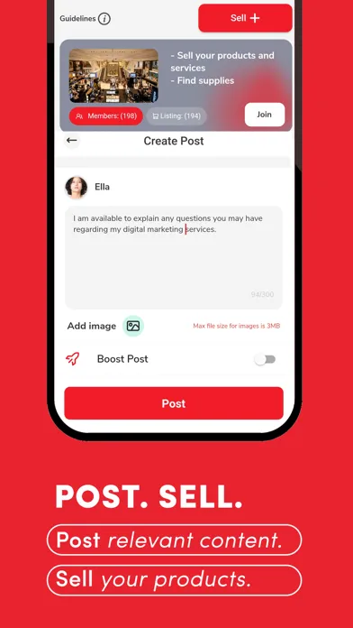 • Selling is easy with the intuitive posts where you can add price, description, photos