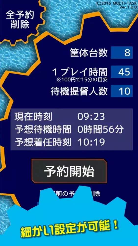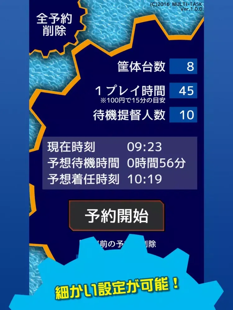 筐体の台数、1プレイの時間、待っている提督の人数を入力すれば、