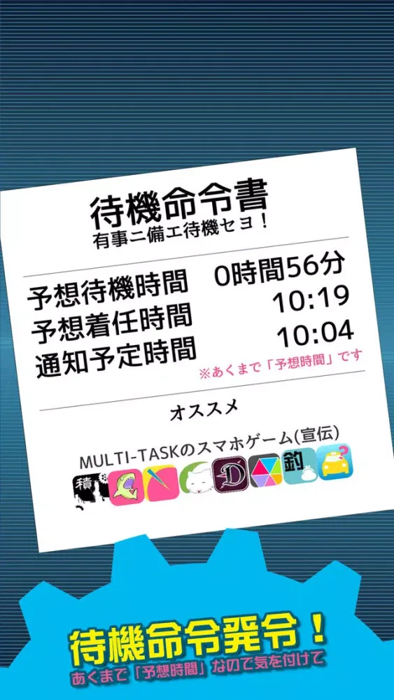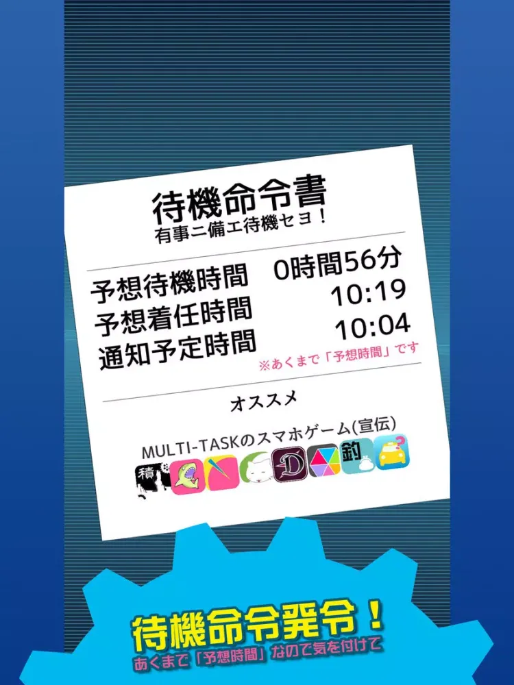 予想着任時間の15分前に呼び出す、など柔軟性のある設定も可能。