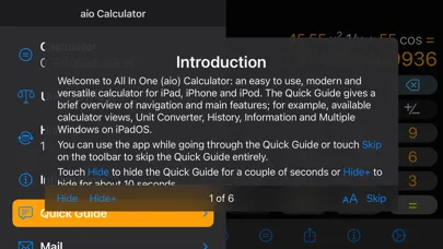 All in One (aio) Calculator is the most complete calculator in the App Store. Ideal for every day use or more complex needs. The app is free and without ads. It's an easy to use and modern calculator with a unique combination of features.