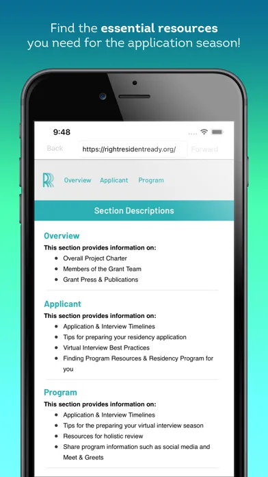 The Right Resident, Right Program, Ready Day One (RRR) App aims to improve the continuum of education between UME & GME by providing tools to ensure that the right resident matches at the right program, and is ready on day one of residency. We strive to optimize the alignment and compatibility between interested applicants and potential residency programs, standardize the application match & interview process, reduce applicant & program anxiety, and unify scheduling and communication policies of programs.