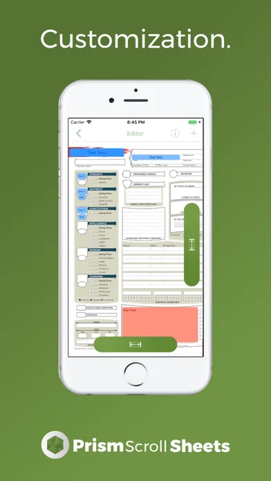 Do you want to have a friendly and simple interface to turn any PNG/JPG/PDF character sheet from any TTRPG you play into an editable and repeatable digital sheet? Then PrismScroll Sheets is the app for you! By importing from your photos or iOS files app, you can add any number of textfields, textboxes, buttons, and images to any location on the sheet that you want! Easily move and resize items that you add with a simple to use interface. Create multiple sheets of any type, all saved on your device for easy access. After you fill out your sheet digitally, you can export your sheet to a pdf form for printing so you can have a clean physical copy.