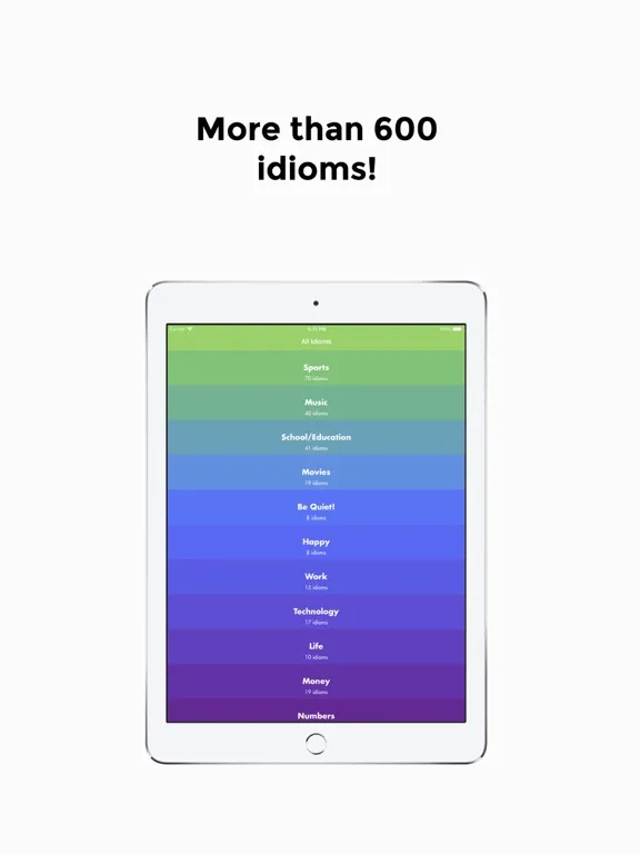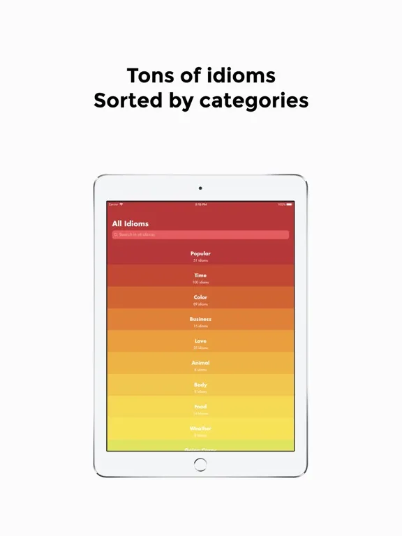 Sorted by categories with a really simple, beautiful and colorful interface that makes learning way more easy!
