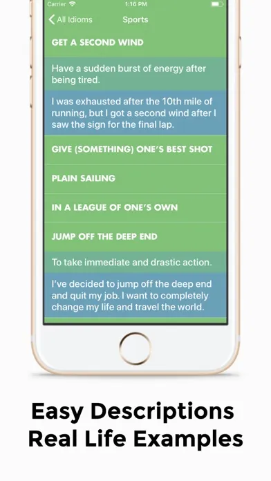 More than 600 idioms and phrasal verbs well explained, with audio and real life examples.