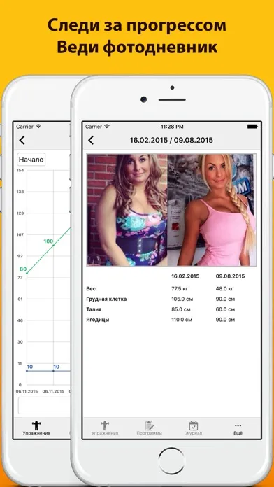 - Возможность оценки изменения формы тела при помощи замеров и фото