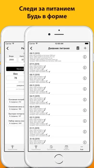 ВКачалке помимо отличного журнала тренировок включает в себя дневник питания с готовой базой продуктов, трекер воды, а так же позволяет следить за своим телом при помощи ведения фотодневника и дневника замеров. В дневник питания так же встроена возможность рассчитать рекомендуемую суточную норму калорий, белков, жиров и углеводов в зависимости от ваших целей.